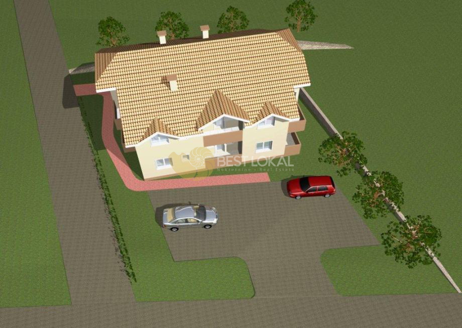Posredujemo u prodaji građevinskog zemljišta 568 m2 sa građevinskom dozvolom i idejnim projektom, Vrtnjakovec, Krapinske Toplice, na staroj glavnoj cesti za Krapinske Toplice. 3D simulacija kuće prema dokumentaciji s tlocrtom 6 stanova na obje etaže. Građevinsko zemljište pravokutnog je oblika površine 568 m2 sa temeljima izgrađenim 2012. godine, građevinska dozvola i idejni projekt za izgradnju stambene građevine sa šest stambenih jedinica, mogući svi priključci.