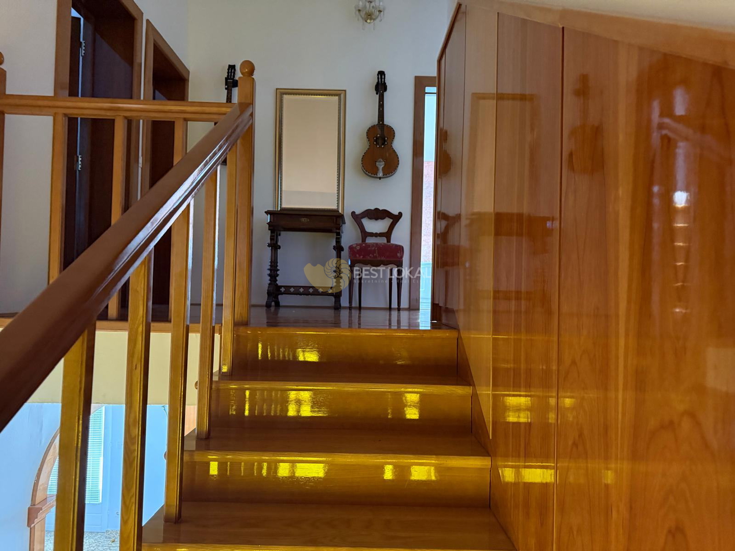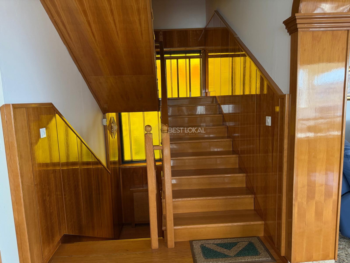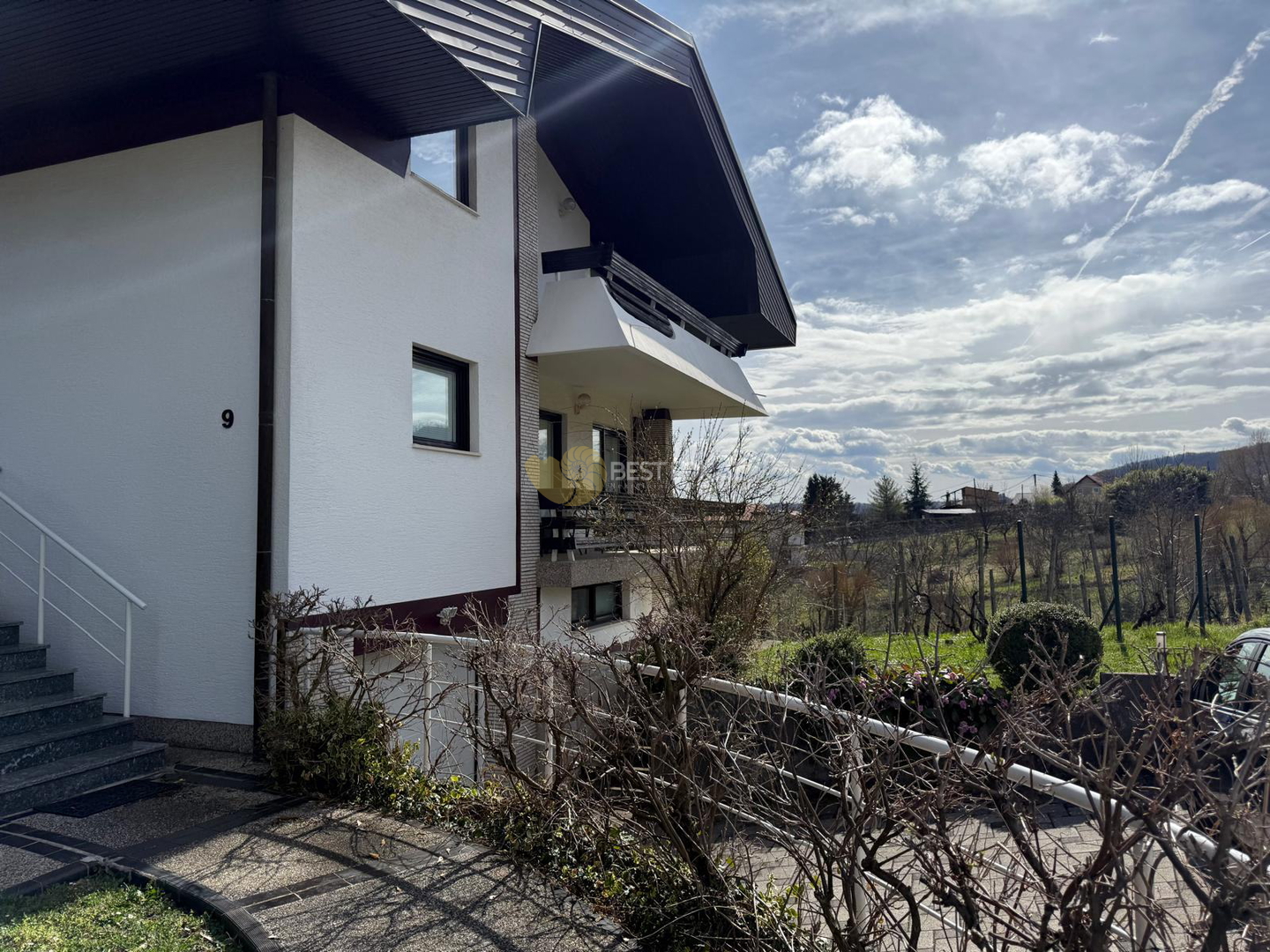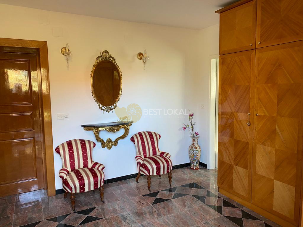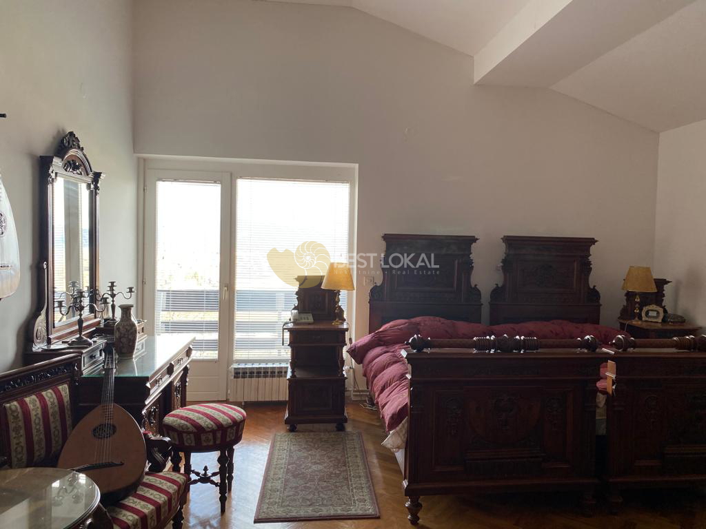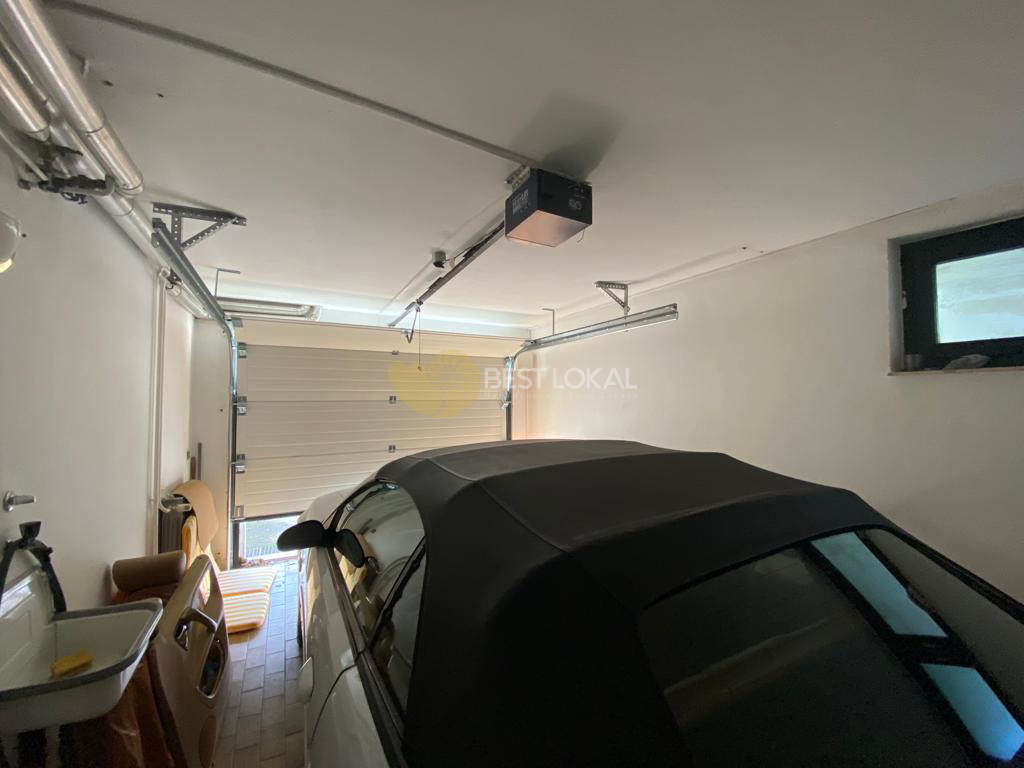 Kuća se sastoji od tri etaže, prizemlja i dva kata, međusobno povezane. Vrlo kvalitetna zidana gradnja (beton, opeka), pažljivo je uređena kvalitetnim ručno izrađenim namještajem od trešnjnog drva i kompletno opremljena svim potrebnim uređajima (ploča za kuhanje, pećnica, hladnjak, perilica posuđa i perilica rublja i dr.). Grijanje je plinsko etažno centralno.