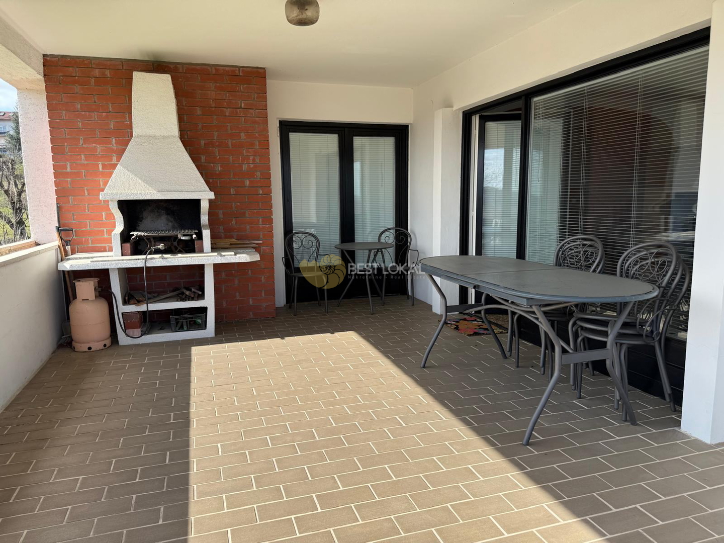 1. KAT: kuhinja, blagovaona i dnevni boravak, kupaona s wc-om i dvije velike terase