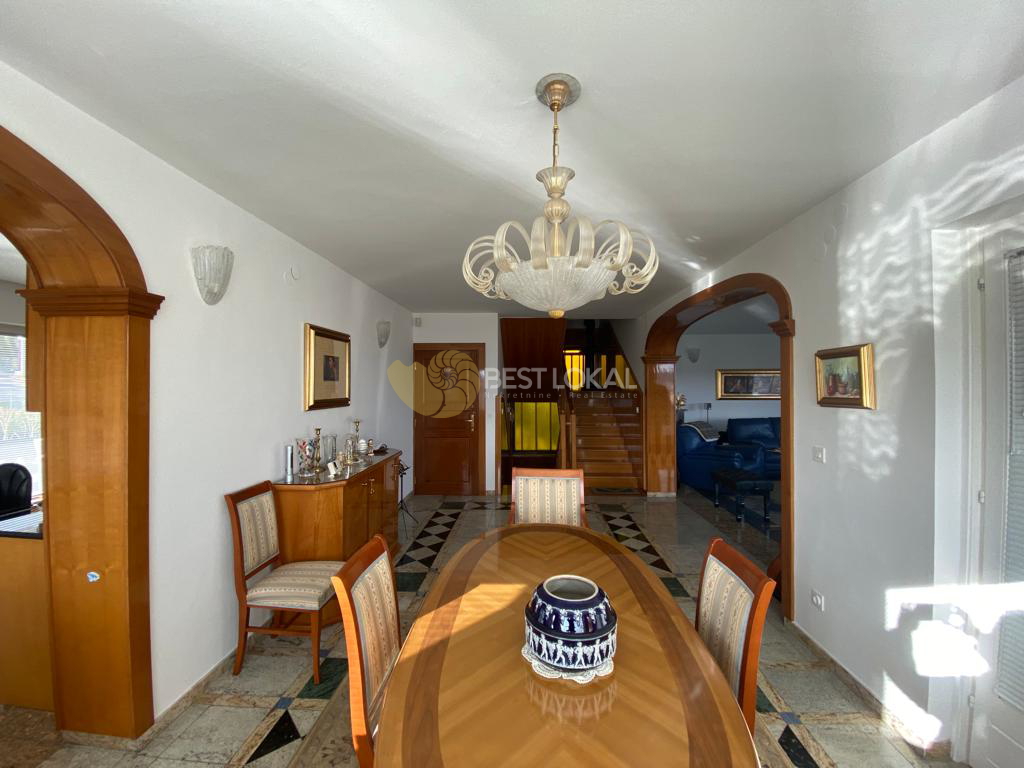 Kuća se sastoji od tri etaže, prizemlja i dva kata, međusobno povezane. Vrlo kvalitetna zidana gradnja (beton, opeka), pažljivo je uređena kvalitetnim ručno izrađenim namještajem od trešnjnog drva i kompletno opremljena svim potrebnim uređajima (ploča za kuhanje, pećnica, hladnjak, perilica posuđa i perilica rublja i dr.). Grijanje je plinsko etažno centralno.