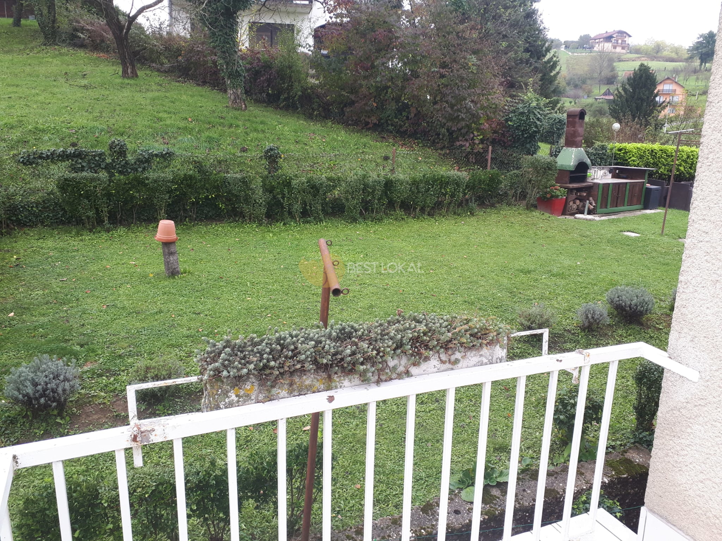 Ima 5 soba, od kojih je jedna u potkrovlju, te kuhinju i blagovaonu, dvije kupaone i dva toaleta, dva balkona površine cca 10 m i dvije terase površine cca 15 m2.